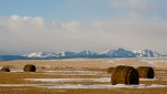 I headed west into the mountains, hoping to do some skiing today; however the mountains were socked in and Canmore had snow covered roads already so decided to turn back. Heading back home a little disappointed, I caught a glimpse of one of those enduring scenes of Canadian beauty in my rear view mirror: gold-brown prairies backed up by snow-covered mountains. I love the view of the Rockies from the prairies, two radically distinct landscapes suddenly meeting and saying hello – they make a majestic pairing. And it’s a lovely thing to wonder at how this landscape took shape.