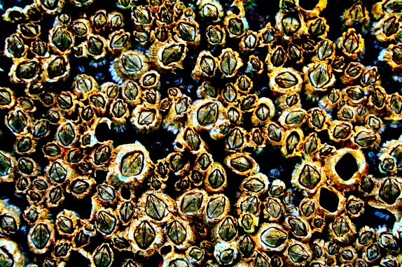 Charles Darwin made them the focus of his study for 10 years; I was able to focus on them this week during after dinner explorations along the Bay of Fundy. The lowly barnacle, inspiration for Captain Haddock’s best alliterative insults (“billions of blue, bilious, blistering barnacles”) and bane of most boaters existence. But they’re beautiful, forming a sort of undersea honeycomb, looking cellular in structure, a simple work of art.
