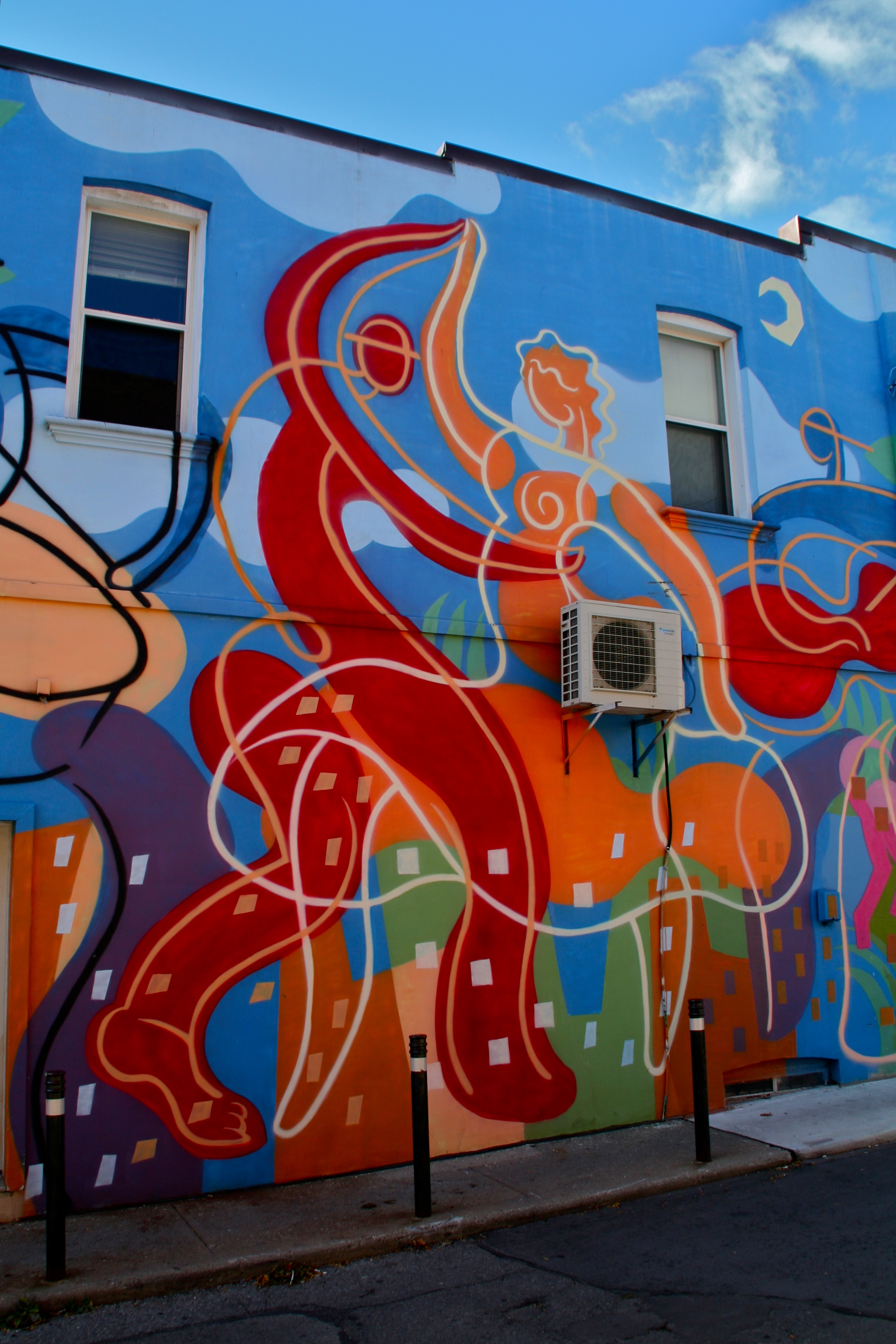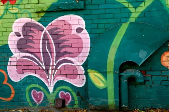 I mean, quite literally, the city is a gallery.  Art is everywhere in the public space, making for intriguing and lovely spaces.  The other day I spent a few hours biking around my end of the city and it took a few hours to cover just blocks of the west end because I couldn’t stop snapping one shot after another of all the street art.  Too much city; too little time.